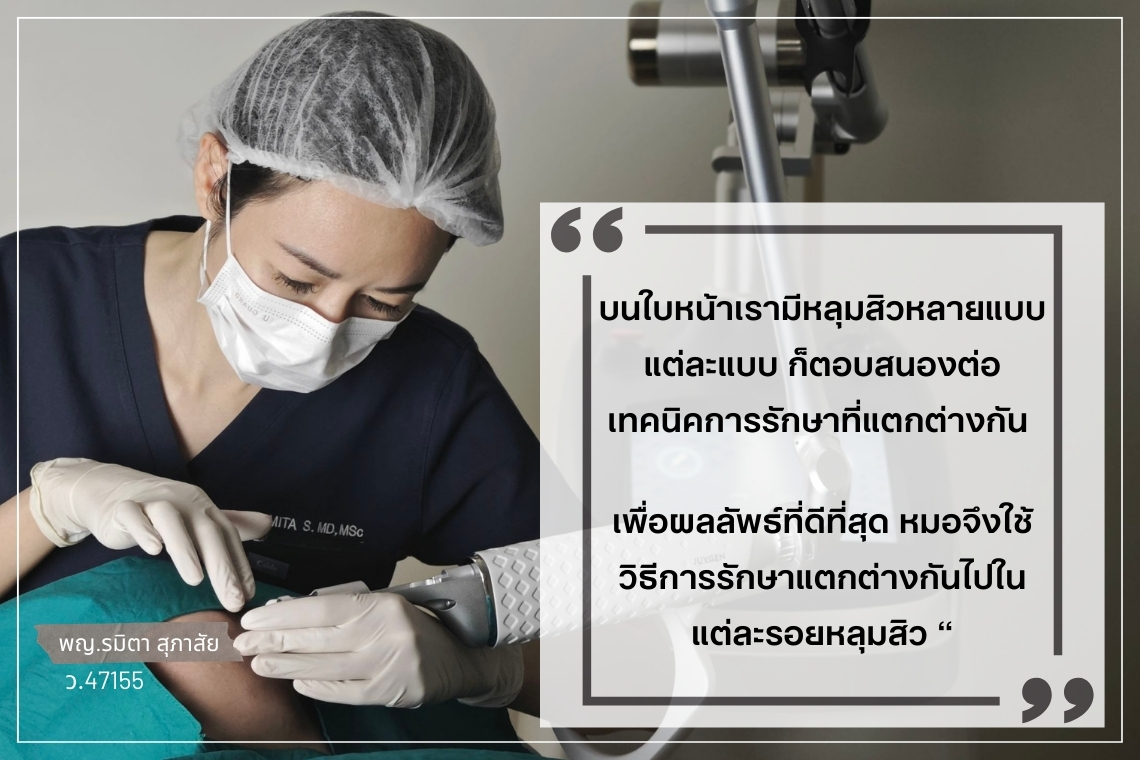 " หมอเชื่อว่า...การฟื้นฟูผิวไม่ควรเต็มไปด้วยแรงกดดัน เพราะการรักษาหลุมสิวเป็นเรื่องละเอียด ต้องใช้เวลาและความร่วมมือทั้งจากหมอและคนไข้ ซึ่งผลลัพธ์ที่ดีไม่ได้เกิดจากการทำเยอะๆ แต่เกิดจากความเข้าใจ รักษาอย่างถูกทางด้วยความละเอียด และใส่ใจ "
