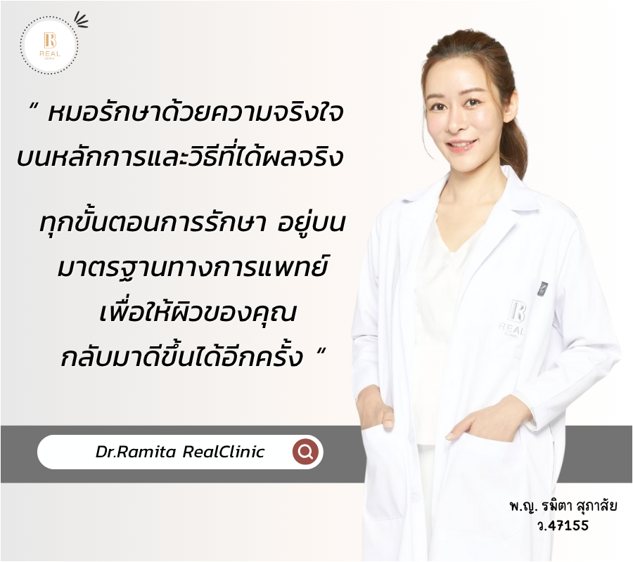 ถ้าคุณกำลังมองหาการรักษาหลุมสิวที่ จริงใจ ปลอดภัย เห็นผลลัพธ์ได้จริง Real Clinic ภายใต้การดูแลของคุณหมอรมิตา พร้อมดูแลคุณในทุกขั้นตอน