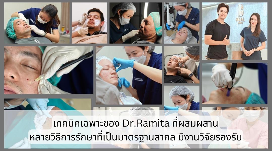 1. Real Scar Synergy: คือ โปรแกรมรักษาหลุมสิวที่ออกแบบขึ้นโดย Dr.Ramita ซึ่งเน้นการรักษาโดยวิธีหัตถการแพทย์เป็นหลัก (Non-Energy Based Acne Scar Revision) ด้วยเทคนิคของ Dr.Ramita ผสมผสานหลายวิธีการรักษาหลุมสิว เสริมด้วยการฉีดสารฟื้นฟู ร่วมกับฉีดก๊าซเข้าไปตัดพังผืดและไปกระตุ้นเนื้อเยื่อคอลลาเจนใต้ผิว ทำให้เกิด Skin Regeneration ฟื้นฟูหลุมสิวด้วยคอลลาเจนของตัวเราเอง เพิ่มเติมด้วยสารฟื้นบำรุงช่วยปรับ