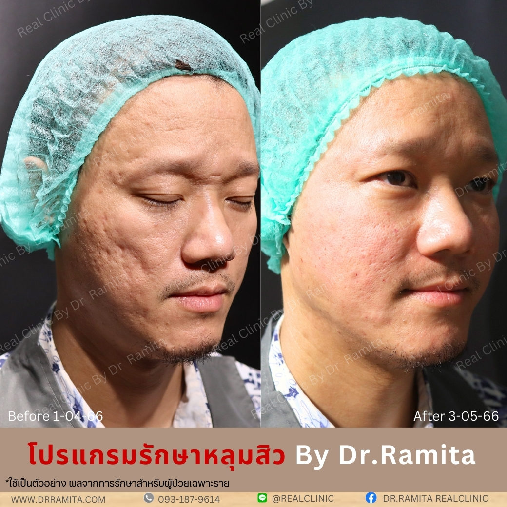 1. Real Scar Synergy: คือ โปรแกรมรักษาหลุมสิวที่ออกแบบขึ้นโดย Dr.Ramita ซึ่งเน้นการรักษาโดยวิธีหัตถการแพทย์เป็นหลัก (Non-Energy Based Acne Scar Revision) ด้วยเทคนิคของ Dr.Ramita ผสมผสานหลายวิธีการรักษาหลุมสิว เสริมด้วยการฉีดสารฟื้นฟู ร่วมกับฉีดก๊าซเข้าไปตัดพังผืดและไปกระตุ้นเนื้อเยื่อคอลลาเจนใต้ผิว ทำให้เกิด Skin Regeneration ฟื้นฟูหลุมสิวด้วยคอลลาเจนของตัวเราเอง เพิ่มเติมด้วยสารฟื้นบำรุงช่วยปรับปรุงคุณภาพผิว เพื่อเสริมประสิทธิภาพการรักษาให้เห็นผลเร็วยิ่งขึ้น ลดการบวมช้ำ พักหน้าน้อยลง