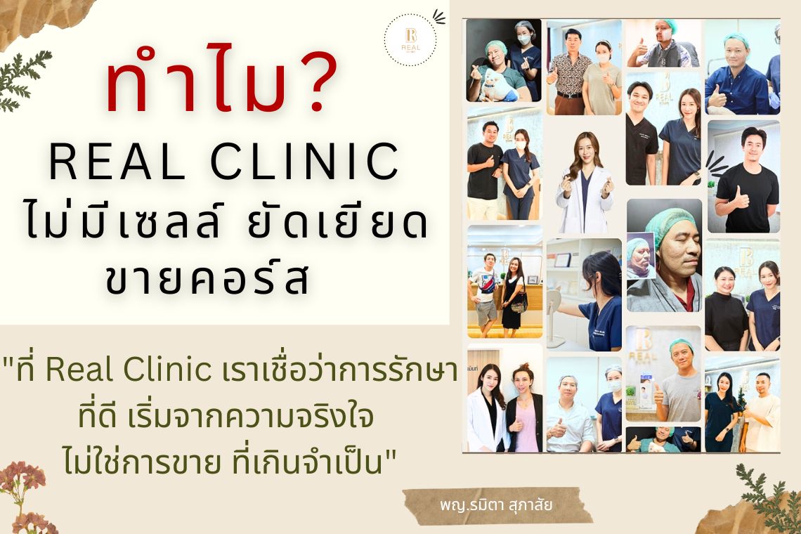Real Clinic ไม่ใช่แค่คลินิกความงาม แต่เป็นสถานที่ที่คุณจะได้รับการดูแลอย่างจริงใจและใส่ใจในทุกรายละเอียด ด้วยการนำเสนอวิธีการรักษาที่เหมาะสมที่สุด ไม่ขายเกินความจำเป็น และมุ่งเน้นให้คนไข้ได้รับผลลัพธ์ที่ดีที่สุด