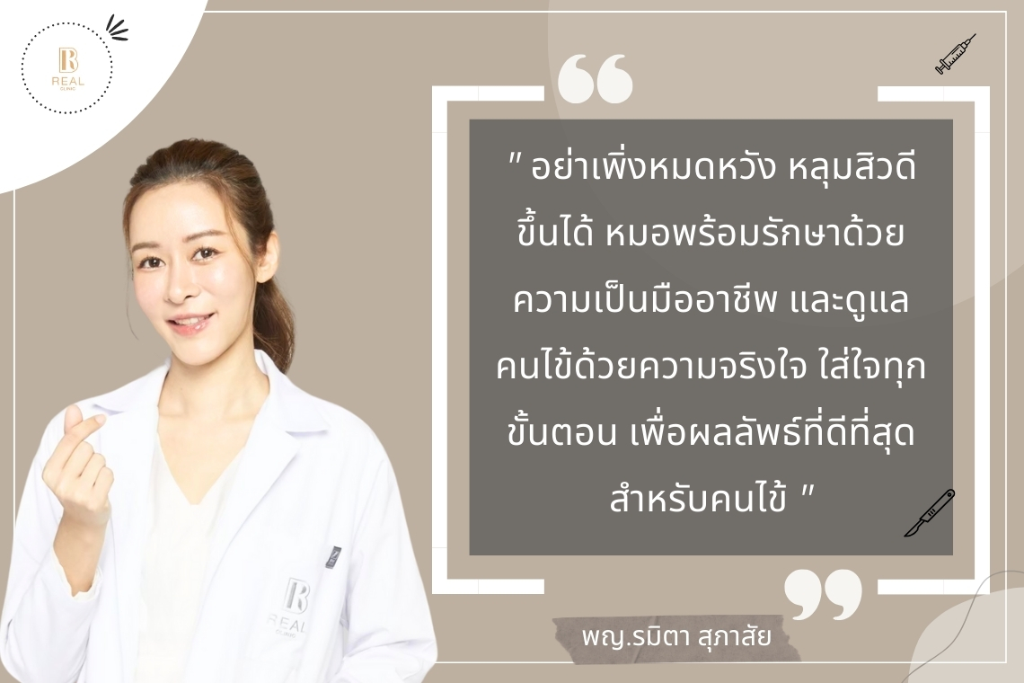 ในยุคที่วงการความงามแข่งขันกันสูง ทุกคลินิกต่างพยายามสร้างยอดขาย ทั้งด้วยโปรโมชั่นดึงดูดใจ ล่อให้เข้ามาก่อนและค่อยปิดการขาย หรือการใช้เซลล์ขายคอร์ส แต่สำหรับ Real Clinic ภายใต้การดูแลของ คุณหมอรมิตา เราแตกต่างอย่างสิ้นเชิง เราเชื่อมั่นในวิถีทางที่แตกต่างออกไป นั่นคือการทำงานด้วยความจริงใจ มุ่งเน้นผลลัพธ์ที่เห็นผลจริง และยั่งยืนในระยะยาว และนี่คือสิ่งที่เราภูมิใจ